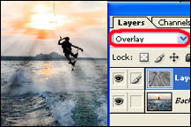 5. Поменяйте режим смешивания слою с размытием на Overlay. Возможно, вам также подойдет режим Soft Light.