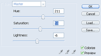 Наконец переходим на Hue/Saturation (Цветовой тон/Насыщенность) и настройте так, как на рисунке, можете поэкспериментировать с цветами.