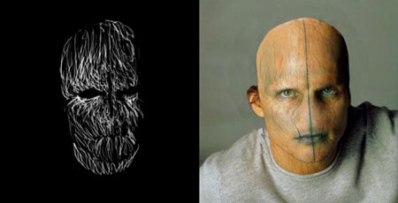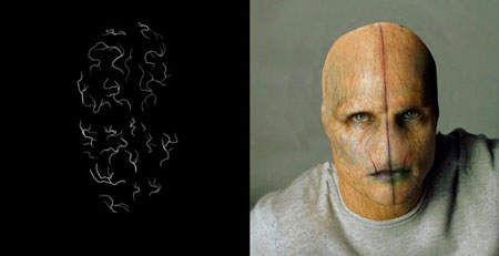 чтобы создать некоторые темные морщины и структуры для лба и глаз, создавая расположенные линии в лицо.