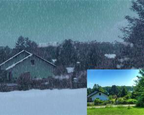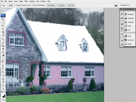 Задача урока: Этот урок покажет вам, как добавлять реалистичный снег к вашей фотографии. Мы будем использовать для применения нашего эффекта снега изображение с домом в солнечном зеленом окружении. Итак, начнем.