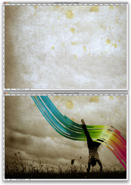 Шаг 14. Наложите еще одно изображение поверх слоев, но ниже слоя с Шумом. Вы можете использовать свое, я использовал это http://www.sxc.hu/photo/982364. Измените размер при необходимости, поменяйте Режим наложения на Multiply (Умножение).