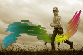 Шаг 9. Теперь деформируйте фигуру Edit - Transform - Warp (Редактирование - Трансформирование - Деформация). Двигайте ячейки, пока не образуете форму волны. По идее линии проходят через одну ногу что впереди и ногу которая позади. Это придаст эффект размерности.
