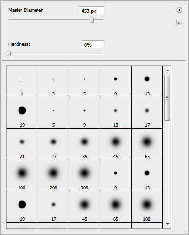 (Brush Tool) белого цвета, с уровнем прозрачности 10%. Другие настройки ниже.