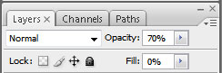 Заливка (Fill) этого слоя 0%, а Прозрачность (Opacity) - 70%.
