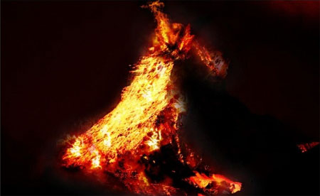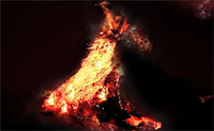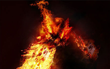 (Eraser Tool) и сотрите черный фон на картинке с пламенем, сам огонь оставьте нетронутым. С помощью Свободного трансформирования (Free transform) (CTRL+T) измените размер пламени. Как оно при этом должно располагаться, вы можете увидеть на рисунке ниже: