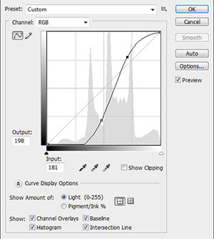 Теперь нажмите CTRL+M и примените такие настройки Кривых (Curves):