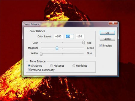 Наблюдаем извержение вулкана в Фотошоп