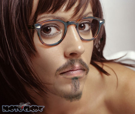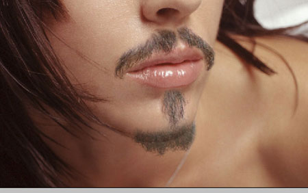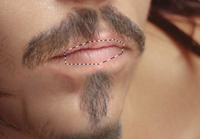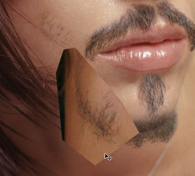 Снова перейдите к «козлиной бородке» Джонни. Выделите также большую часть его нижней губы. Поместите ее в наш документ и назовите слой goatee2 (козлиная бородка 2). Поверните ее на -17 и поместите ее немного ниже так, чтобы немного увеличить его губу. Выровняйте линии его губ как можно лучше.