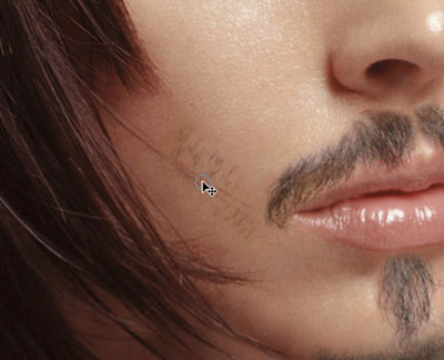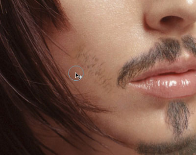 Шаг 5. Теперь пришло время для редкой части бороды Джонни Деппа (мало отличающейся от моей). Возьмите часть щетины с его щеки и поместите, как показано на изображении. Назовите этот слой cheek (щека).