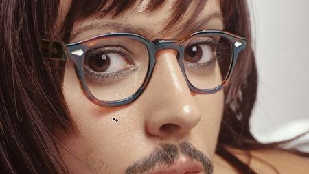Снова обратимся к color picker (цветовой палитре) и выберем красноватый оттенок кожи. Я воспользовался тенью под очками. То, что нам нужно сделать - добавить немного тени от очков.