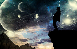 Автор нашёл ещё кисти планет и кисти звёзд на DeviantArt и добавил их в изображение. Теперь наша картина выглядит так: