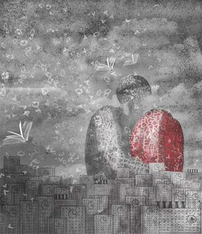 Открываем изображение Flying books, вырезаем книгу и обесцвечиваем ее (CTRL+SHIFT+U). Вставляем на рабочий документ. Дублируем книгу несколько раз и меняем размер, расположение и наклон каждой копии с помощью Свободного трансформирования (CTRL+T), чтобы разнообразить работу.