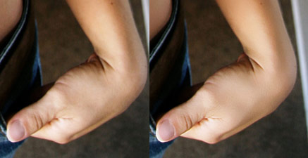 Для начала установите Радиус (Radius) и Порог (Threshold) так, чтобы изображение стало размытым, но по-прежнему различимым. Затем понижайте значение параметра Порог (Threshold) и остановитесь, когда края станут резкими. Теперь скорректируйте параметр Радиус (Radius) так, чтобы кожа стала гладкой.