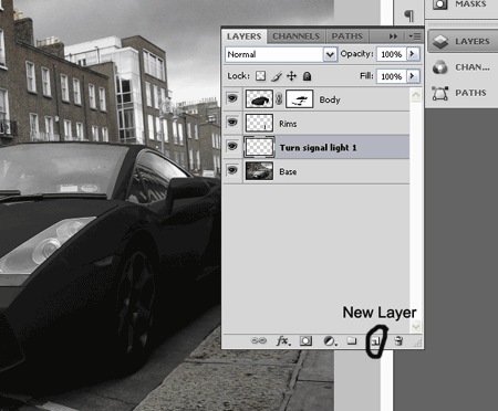 Откройте новый слой над слоем “Поворотная фара 1”. Назовите его “Поворотная фара 2”.