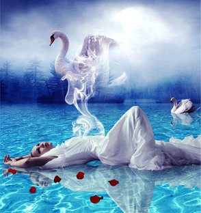 Шаг 10. Откройте изображение лебедя и отделите его от фона. Я использовал мягкую кисть там, где вода, чтобы получить красивый переход в нижний слой с водой. Я создал корректирующий слой Levels (Уровни), аналогично тому, как я делал с изображением девушки – осветлил изображение, и Color Balance (Цветовой баланс) для придания голубого оттенка.