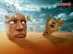 Нижняя область нашей стальной маски должна быть погружена в песок. Чтобы сделать это, убеждаемся в активности слоя "стальная маска" и переходим Layer - Layer Mask - Reveal All (Слой - Слой-маска - Показать все). Берем черную мягкую кисть