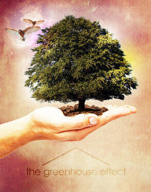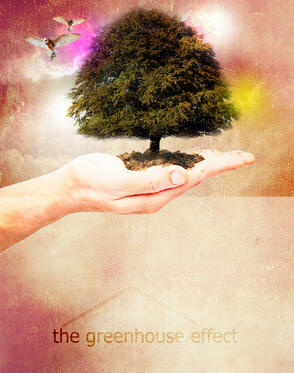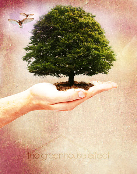 Шаг 18. Теперь добавим текст. Я использовал шрифт Century Gothic, но вы можете взять любой другой. Убеждаемся, что выбран черный цвет, размер 100px и пишем текст "the greenhouse effect". Устанавливаем режим смешивания слоя на Soft Light (Мягкий свет).