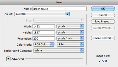 Шаг 1. Начнем с создания нового документа. Используем параметры, как на скриншоте ниже.