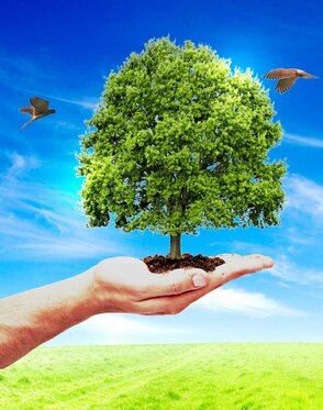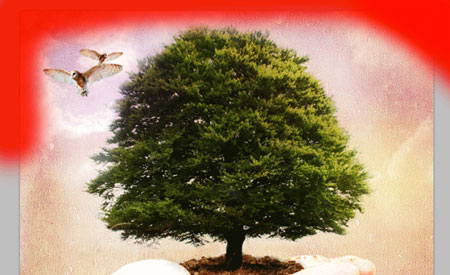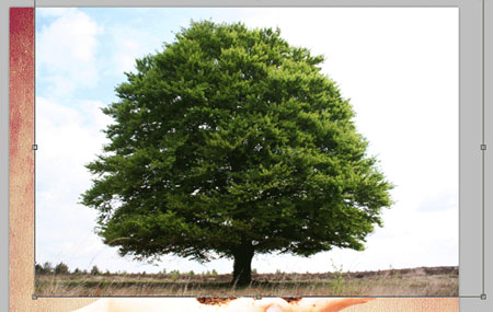 Шаг 5. Теперь нам необходимо расположить дерево так, чтобы оно как-будто росло из земли на руке. Открываем фото дерева и располагаем на рабочем документе. Используем Трансформацию (CTRL+T), чтобы подогнать размер.