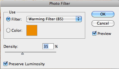 Для копии применяем фильтр Image - Adjustments - Photo Filter (Изображение - Коррекция - Фото-фильтр).