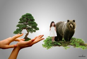 Выращиваем бонсай на руке в Фотошоп. Спасибо.