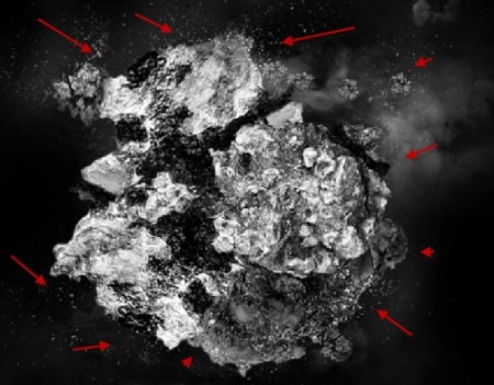 fire explosion brush, нарисуйте облако вокруг метеорита, как показано ниже: