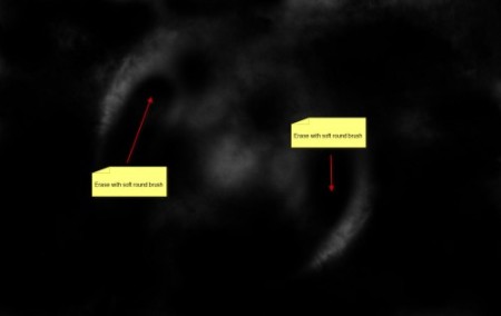 Шаг 1. Создайте новый документ размером 1400x900 пикселей, с черным фоном. Создайте новый слой и, используя кисть Fire Explosion Brush, небольшую туманность, как показано ниже: