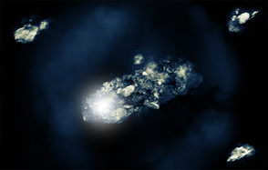 Деформируйте немного это свечение и поместите его в левый верхний угол метеорита: