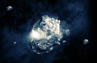 из набора Debris Brush, нарисуйте осколки вокруг метеорита (убедитесь, что настроили непрозрачность и нажим кисти в пределах 40%, до начала работы над осколками).