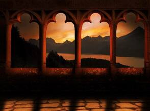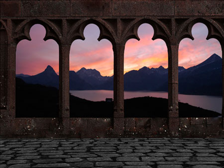 Шаг 2. Далее, отройте изображение «дворцовое окно с арками». Давайте переименуем этот слой и назовём его «Колонны».