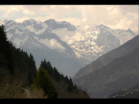 Шаг 6. Я хочу получить эффект, что наша дворцовая галерея простирается на горном склоне. Для того, чтобы получить такую иллюзию, откройте изображение горный лес. С помощью инструмента «Волшебная палочка»