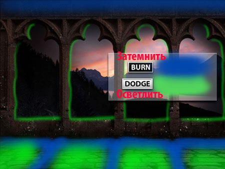 Далее, для слоёв «Колонна» и «пол», применяете инструменты «осветлитель