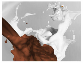 Сделайте копию слоя с шоколадом и с помощью свободной трансформации (Free Transform) отразите её по горизонтали (horizontal Flip). Создайте еще один всплеск шоколада из этого слоя.