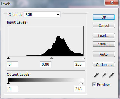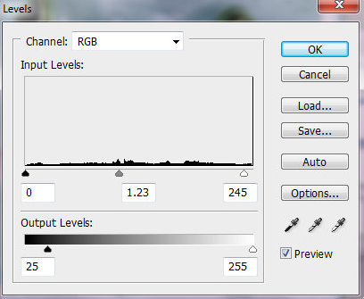 Шаг 5. Добавьте корректирующий слой Уровни (Levels), и так же как в шаге 2, создайте для него отбравочную маску. Сделаем размытый слой светлее, используя следующие настройки.