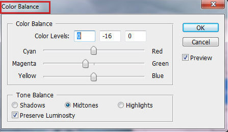 Шаг 33. Отрегулируем цвет. Для этого создайте новый корректирующий слой Цветовой баланс (Color Balance) с такими настройками: