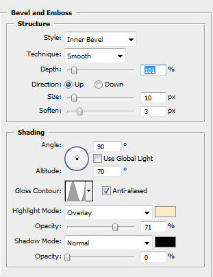 Шаг 36. Загрузите выделение слоя с языком и залейте любым цветом на новом слое. Уменьшите Заливку слоя (Fill) до 0%. Примените стиль слоя Тиснение (Bevel and Emboss).