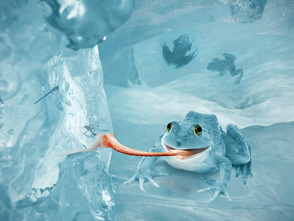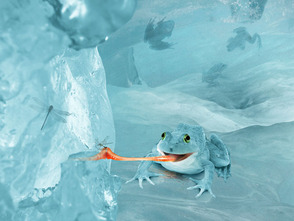 Photoshop является отличным инструментом для создания композиций, которые не могут или не существуют в реальной жизни. В сегодняшнем уроке мы научимся объединять несколько стоковых изображений и эффектов, для создания вымышленной, арктической, снежной лягушки. На изображении видно несчастных друзей лягушки, которые уже заморожены во льдах и её еда, которая тоже заморожена и находится вне зоны доступа.