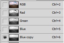 Оставьте копию синего канала видимой, остальные пока отключите.