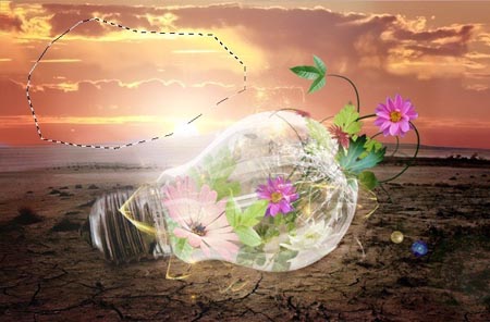 Лампочка и цветы внутри неё должны иметь оранжевый оттенок. Чтобы добавить его, сделаем следующее: выделите участок неба похожий на форму лампочки.