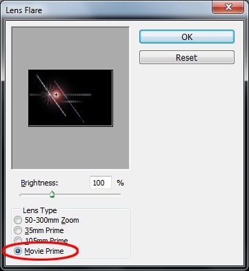 Шаг 25 - Настройка Блика (Lens Flare).
