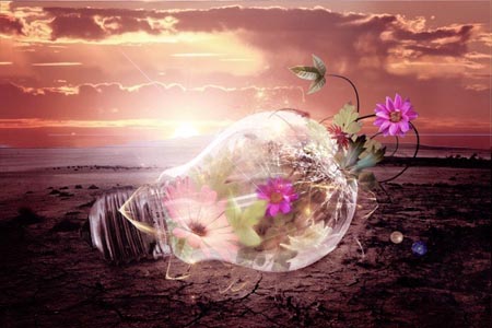 Создай коллаж с сияющей лампочкой в Фотошоп