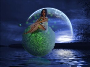 Создаем выделение вокруг планеты и применяем Filter - Distort - Spherize (Фильтр - Искажение - Сферизация). Параметр по вертикали и по горизонтали оставляем на 100%. Теперь располагаем планету так, чтобы она находилась между корректирующими слоями и фоном.