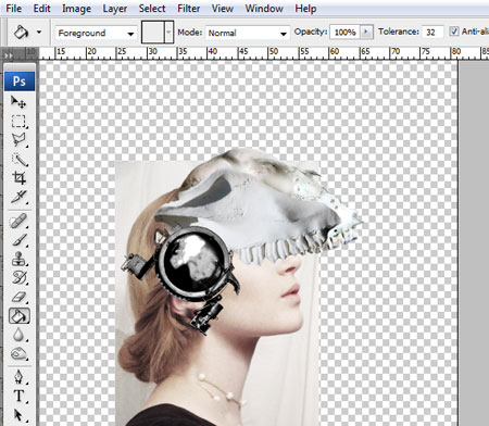 Я решил, что необходимо скрыть тело девушки, оставив только её голову, проделайте то же самое, что вы проделывали с черепами.