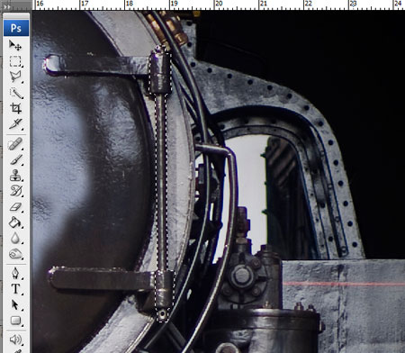 (Path Tool (P) и выделите выхлопную трубу. Скопируйте выделение, возвращаемся на наш документ и вклеиваем скопированное изображение, размести изображение выхлопной трубы, как показано ниже.