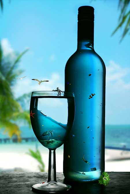 Шаг 3. Теперь мы можем перейти к колоризации. В этом шаге мы будем улучшать наш коллаж путем создания нескольких цветных слоев, которые помогут улучшить фон и бутылку с бокалом.