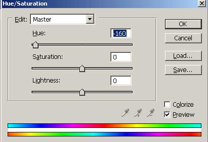 Нажмите CTRL+U на клавиатуре, чтоб открыть окно Цветовой тон/Насыщенность (hue/saturation) и используйте следующие настройки: