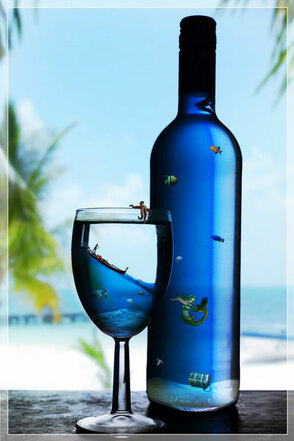 Теперь мы должны погрузить его в бутылку. Измените размер человека по своему усмотрению. Примените к нему ту же технику, которую мы использовали для песка в предыдущих шагах, чтоб человек выглядел так, будто он в бутылке.