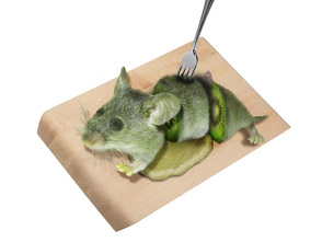 Далее, мы перенесём вилку на наш документ. Поместите вилку на тело мыши и с помощью слой- маски удалите зубцы вилки.