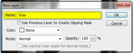 Для начала убедитесь, что задний план активен и создайте новый слой (Ctrl/Cmd + Shift + N), поверх заднего плана повится новый слой автоматически – когда откроется таблица создания нового слоя, поставьте "Gray" в строке имени.