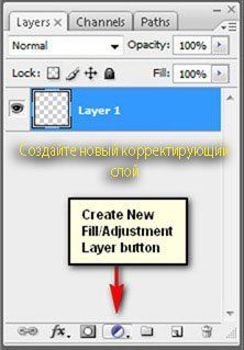 Улучшим внешний вид фотографии в целом. Поработаем над Яркостью/Контрастностью - Brightness/Contrast нашего изображения. Нажмите на кнопку Создать новый корректирующий слой "Create New Fill/Adjustment layer" .